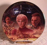 It depicts the beautiful Kes from the pilot episode 'Caretaker' in the center of the plate.